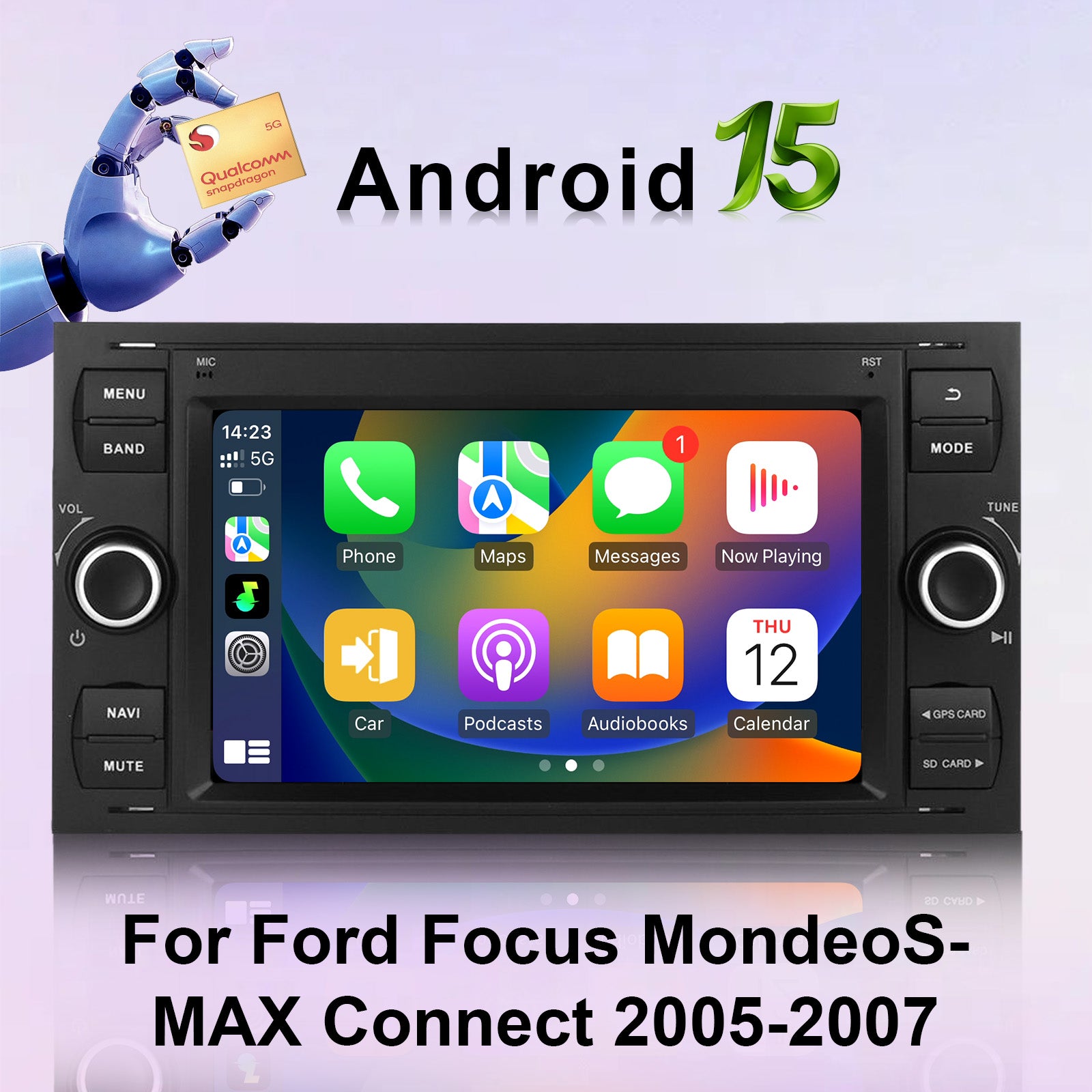 Android 15 Car Radio Stereo with Wireless CarPlay Android Auto, 7 Inch HD Touch Screen for Ford Focus/Mondeo/S-MAX/Connect 2008-2011, Bluetooth GPS Navigation,WiFi,SWC