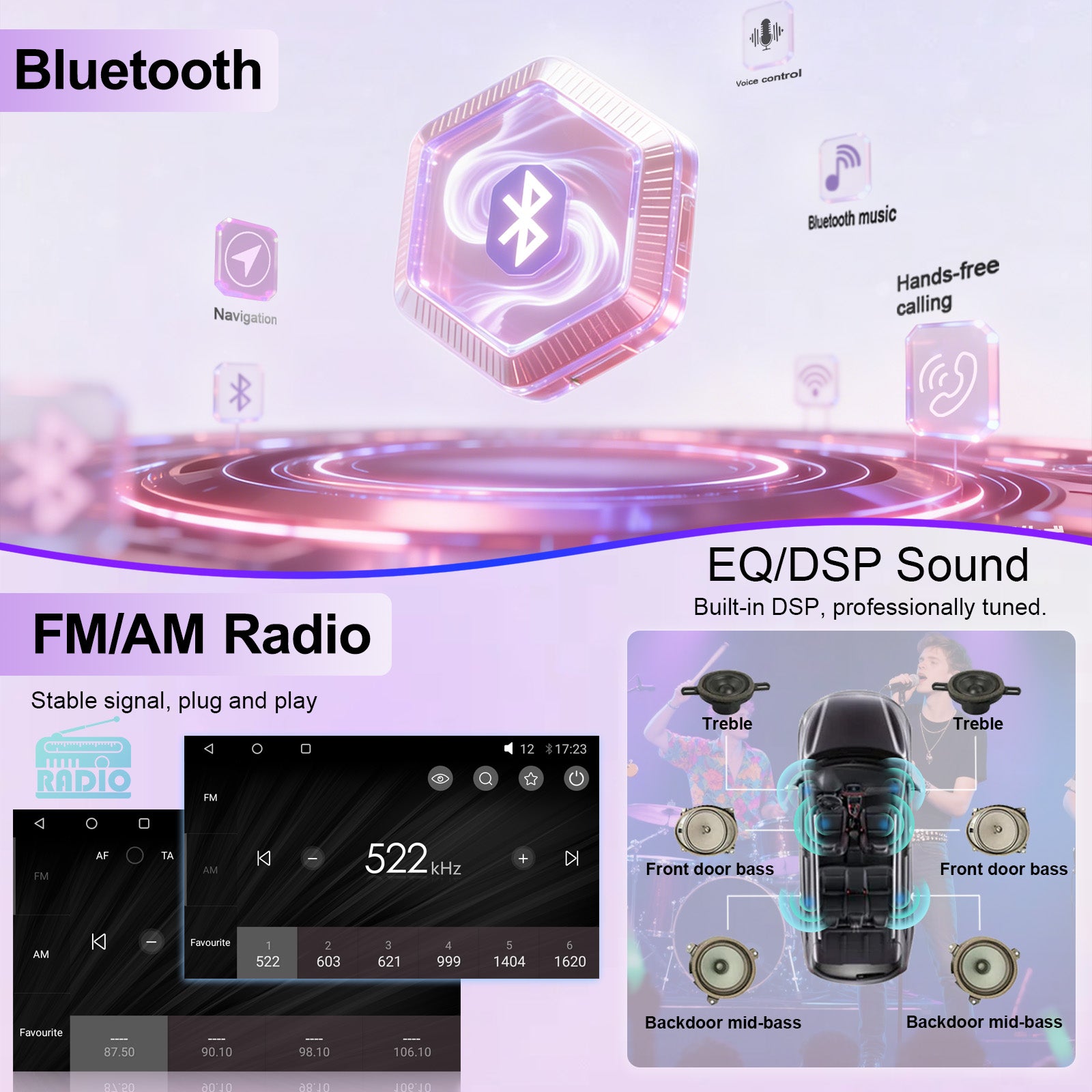 - Built-in SI47925 (HiFi DSP + genuine DTS sound effect) high-performance radio chip