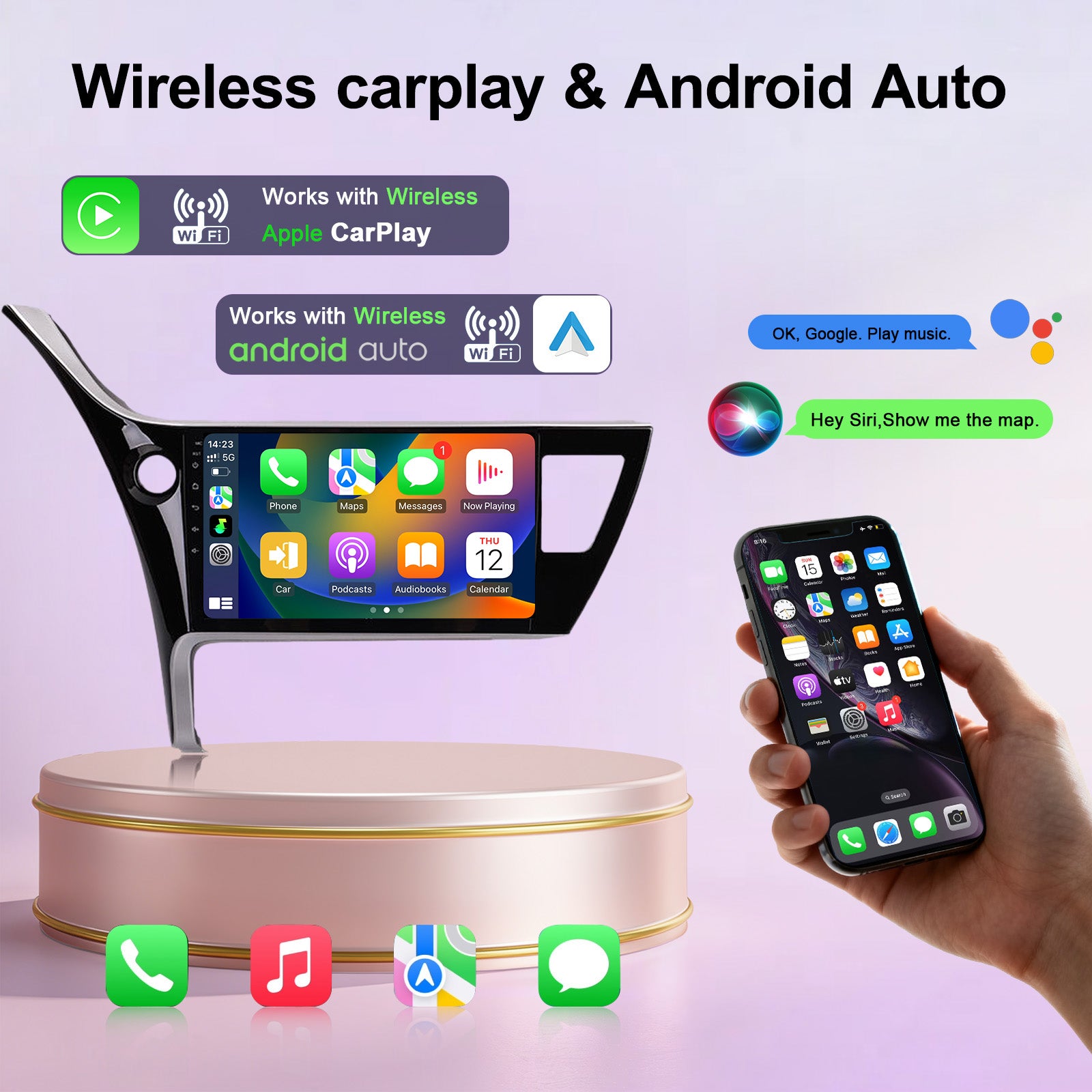 Android 15 Qualcomm 8 Core Car Stereo for TOYOTA COROLLA 2017-2018 with 10 Inch Touch Screen Wireless CarPlay Android Auto GPS WiFi Bluetooth FM GPS