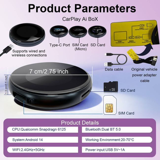 Powered by Qualcomm Snapdragon 6125, this CarPlay box delivers smooth performance, fast response, and stable wireless connection.